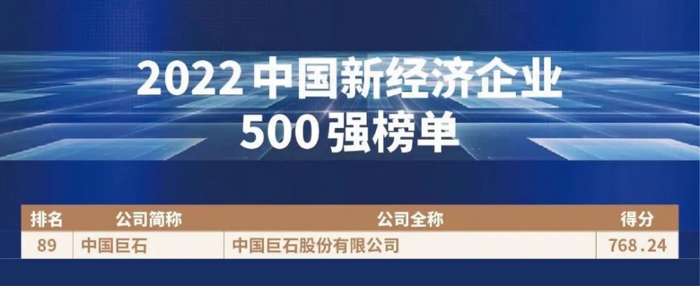 喜報(bào)!中國(guó)巨石榮登“中國(guó)新經(jīng)濟(jì)企業(yè)500強(qiáng)”第89位