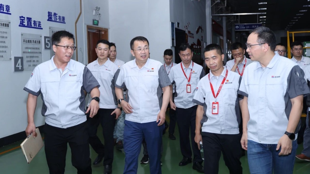 8月13日,中國巨石黨委書記、總裁楊國明,副總裁沈林帶領(lǐng)公司桐鄉(xiāng)總部各生產(chǎn)單位相關(guān)廠部級(jí)干部,深入生產(chǎn)一線開展專題調(diào)研,看新舊變化,找亮點(diǎn)差距,謀未來發(fā)展。