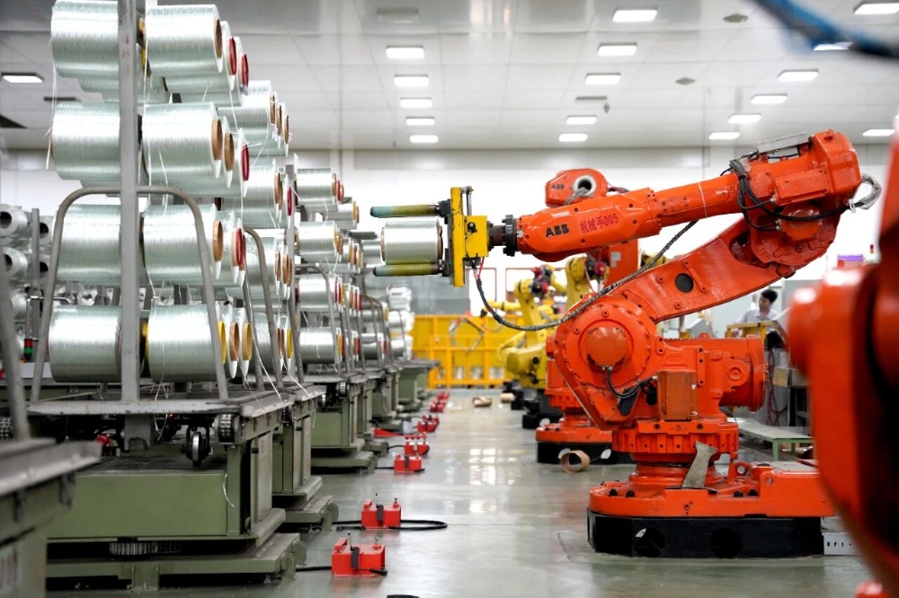 走進(jìn)巨石成都智能制造基地,玻纖紗團(tuán)有序列隊自動輸送,隨后貼標(biāo)、分揀、AI質(zhì)檢、稱重、包裝、入庫,實現(xiàn)了全廠區(qū)、全流程的智能監(jiān)控與集中調(diào)度。這些智能化場景的實現(xiàn),根植于巨石在工業(yè)機(jī)器人創(chuàng)新研發(fā)、人工智能檢測技術(shù)、人機(jī)協(xié)同交互系統(tǒng)以及智能控制集成等領(lǐng)域的硬核實力。