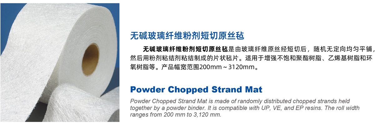 | P02 | 短切氈拉伸強(qiáng)度高,適用于手糊成型工藝生產(chǎn)面積較大的制品,樹脂浸穿性好, 浸透速度快,氣泡容易排除,制品機(jī)械強(qiáng)度高,具備優(yōu)異的耐酸腐蝕性能 High tensile strength, suitable for use in hand lay-up process to producelarge-area parts, good wet-through and fast wet-out in resins, rapid air lease, high mechanical strength of composite products, superior acid corrosion resistance | |